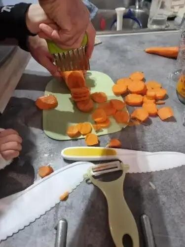 Lorsque les enfants apprennent à couper, à préparer et à créer par eux-mêmes, ils développent leur confiance, leur autonomie et la fierté de ce qu'ils accomplissent. Il ne s'agit pas seulement de cuisiner, il s'agit d'aider votre enfant à croire en ses capacités.